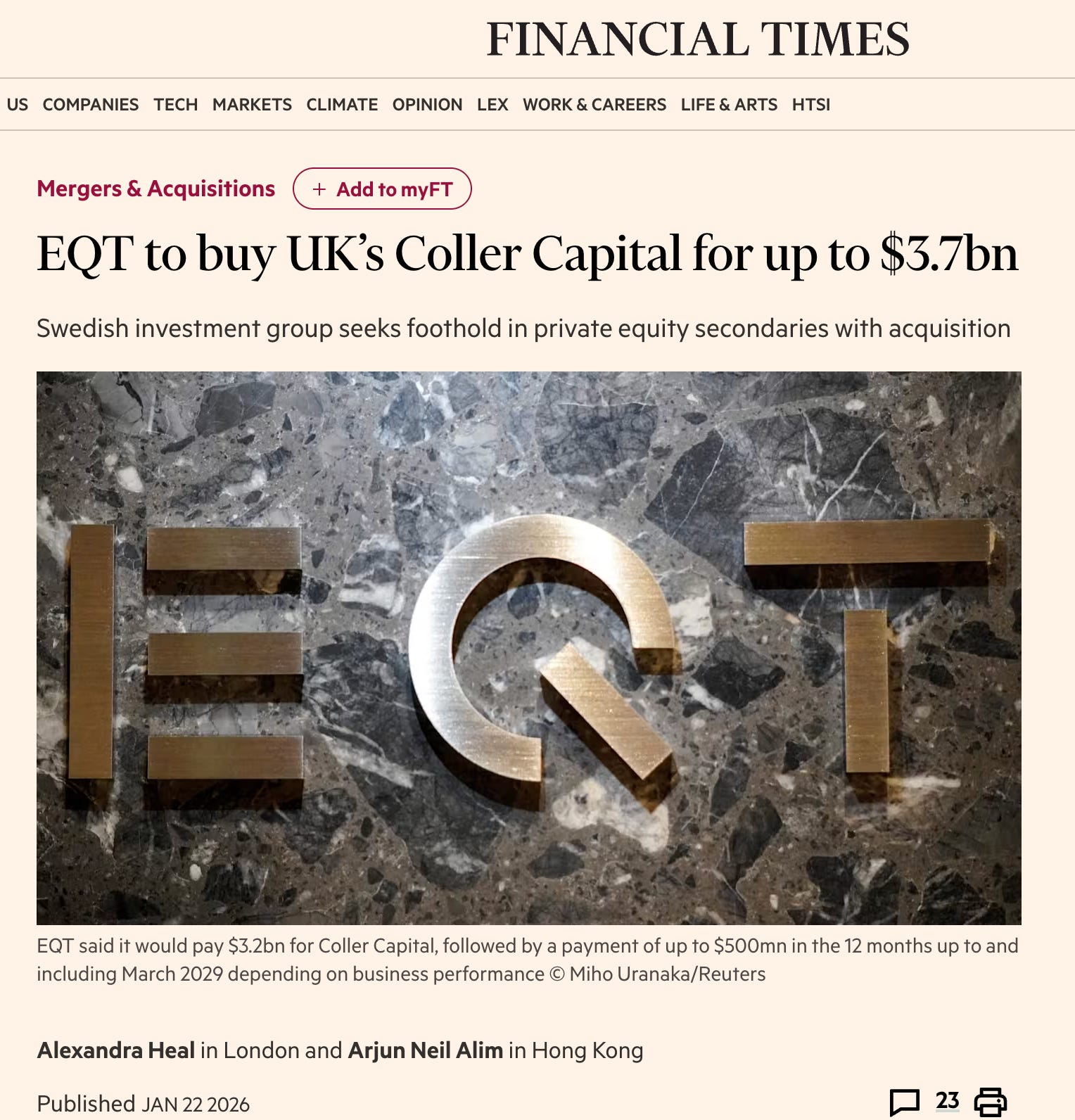 Now EQT buys Coller.